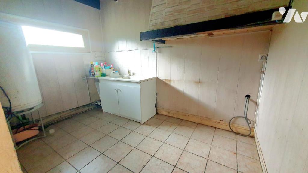 garage avec coin dépendances, terrasse, jardin ensoleillé, parking,